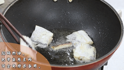 起鍋熱油,把帶魚煎至兩面金黃撈出備用