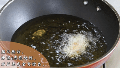 鍋里起火熱油,油溫6成放入雞翅,炸至表皮金黃撈出,再把油溫?zé)?成熱,雞翅炸至表皮酥脆撈出控油備用