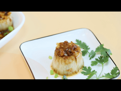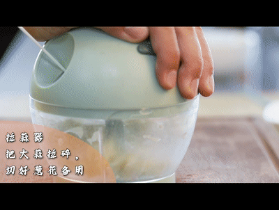 用拉蒜器把大蒜拉碎、切好蔥花備用