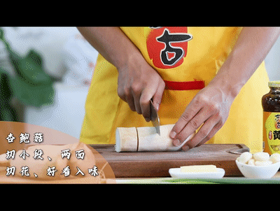 杏鮑菇切3-4cm小段、兩面改刀切花、