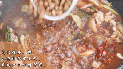 大火燒沸、加入花生轉(zhuǎn)中小火,再燉一個(gè)小時(shí)即可
